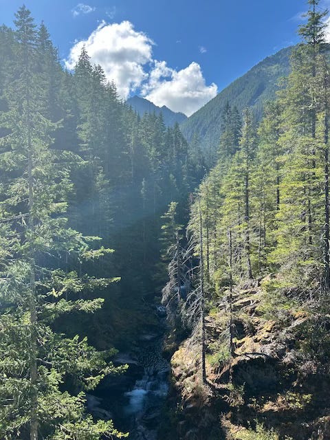 But I rest easy in my faith, my hope, and my ongoing effort to love Him and all He created. Aside from those created in His Image and likeness, I am blessed to live in a place that once you hit the rain forest mountains, or to the east the cascades, with of course, “The Mountain”, Rainier.